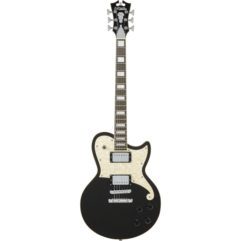Corpo in Tiglio, manico in acero con tastiera in Ovangkol, meccaniche rotomatic stairstep, ponte con stop bar, colore Black Flake con finitura Lucida. Custodia morbida imbottita con Logo D’Angelico compresa.