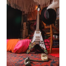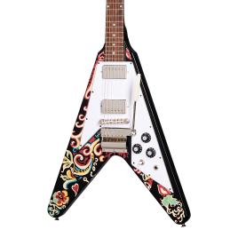 Ora Epiphone, in collaborazione con Gibson Custom e la famiglia Hendrix, è orgogliosa di presentare la Jimi Hendrix “Love Drops” Flying V™, una ricostruzione Inspired by Gibson Custom di una chitarra che Jimi ha suonato a lungo nel periodo 1967-1969.