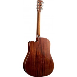 La Martin DC-13E è una chitarra elettroacustica dreadnought progettata per unire estetica moderna, comfort esecutivo e prestazioni affidabili in uno strumento completo e professionale. Il corpo con spalla mancante combina un top in abete con fondo e fasce in koa, offrendo una risposta timbrica equilibrata caratterizzata da acuti brillanti, medi definiti e un sustain omogeneo e potente. L’incatenatura scalloped X-brace migliora in modo significativo proiezione e sensibilità dinamica, rendendo lo strumento reattivo a ogni tecnica esecutiva, dal fingerstyle più delicato allo strumming energico. Il manico con profilo Performing Artist e High-Performance Taper assicura una presa naturale e scorrevole lungo tutta la tastiera, facilitando l’accesso ai tast più alti grazie al cutaway. La tastiera in ebano con intarsi diamonds and squares contribuisce a una sensazione di precisione e stabilità sotto le dita, migliorando controllo e definizione. L’elettronica Martin E1 integrata, completa di accordatore, consente di ottenere un’amplificazione naturale, chiara e controllata, ideale per l’utilizzo live e in studio.