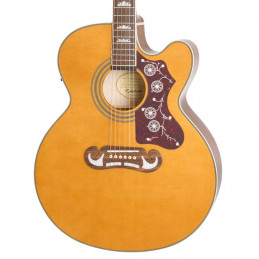 La J-200 EC rende omaggio al Re delle Flattop, la classica Gibson SJ-200. Questa Epiphone Inspired by Gibson presenta un body Super Jumbo a spalla mancante con fondo e fasce in acero selezionato, top in abete massello per un suono eccezionale, manico in acero con un profilo SlimTaper D, tastiera in pau ferro, 20 tasti jumbo medi ed eleganti intarsi madreperlati a corona. Il ponte ha la leggendaria forma Moustache e il battipenna presenta l'iconica grafica J-200. Viene fornita con un pickup sottosella Fishman Sonicore ed un preamplificatore Presys con accordatore incorporato.