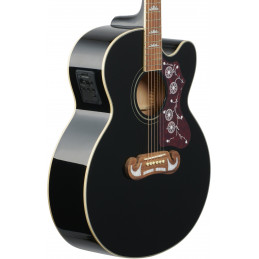 La J-200 EC rende omaggio al Re delle Flattop, la classica Gibson SJ-200. Questa Epiphone Inspired by Gibson presenta un body Super Jumbo a spalla mancante con fondo e fasce in acero selezionato, top in abete massello per un suono eccezionale, manico in acero con un profilo SlimTaper D, tastiera in pau ferro, 20 tasti jumbo medi ed eleganti intarsi madreperlati a corona. Il ponte ha la leggendaria forma Moustache e il battipenna presenta l'iconica grafica J-200. Viene fornita con un pickup sottosella Fishman Sonicore ed un preamplificatore Presys con accordatore incorporato.
