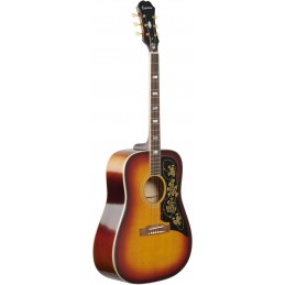 La collezione Masterbilt presenta una ricostruzione della rara Epiphone Frontier degli anni '60. Caratterizzato da un body a spalla squadrata con parte posteriore e lati in acero massello, un top in abete Sitka con l'iconico battipenna "Rope and Cactus", capotasto e sella in osso, e il sistema di preamplificazione integrato Fishman Sonitone per uno vero suono acustico quando è collegata. Disponibile con finitura Ice Tea lucida invecchiata.