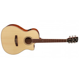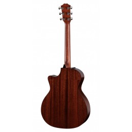 Il timbro caldo e aperto del sapele massello è controbilanciato dal suono fresco e caratteristico della tavola in abete sitka. La chitarra inoltre è caratterizzata da una tastiera in ebano con intarsi dot, ponte in ebano e l'innovativa elettronica Taylor Expression System 2.