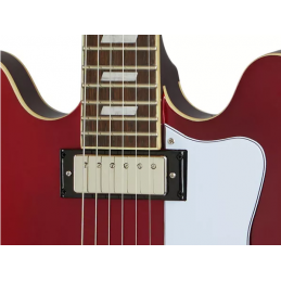 La Epiphone Riviera, uno dei classici originali e più duraturi di Epiphone, fa il suo ritorno! Introdotto per la prima volta nei primi anni '60, il design semi-hollow della Epiphone Riviera è stato uno dei preferiti dai musicisti di tutti i generi e di tutte le generazioni, tra cui i grandi del blues Robben Ford e Otis Rush, Lou Reed dei Velvet Underground e Nick Valensi dei The Strokes, che hanno tutti constatato che la leggendaria forma del corpo ES™ della Riviera è in grado di produrre grandi toni con qualsiasi variazione di pickup. Questa Riviera presenta un top e fasce in acero stratificato, un battipenna a tre strati con la classica "E" Epiphone in metallo ed è dotata di ponte regolabile Epiphone LockTone™ Tune-O-Matic™ e cordiera Frequensator. Disponibile nelle finiture Royal Tan e Sparkling Burgundy full gloss. Custodia Hardshell o EpiLite™ venduta separatamente.