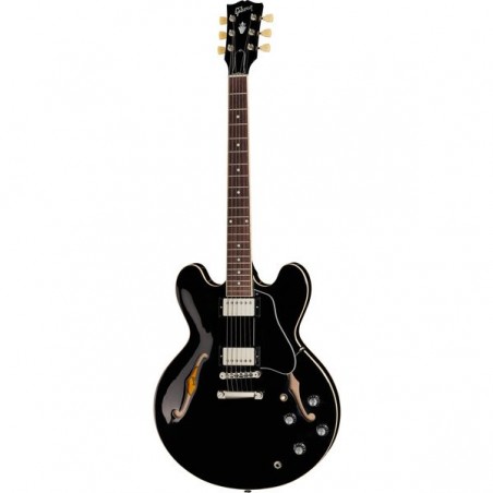 La Gibson ES-335 Dot è la pietra angolare della gamma Gibson ES. Dalla sua apparizione inaugurale nel 1958, la Gibson ES-335 fissò immediatamente uno standard senza eguali. La tastiera in palissandro con intarsi Dot perlati su un manico in mogano a "C" arrotondato a mano, ricorda ai chitarristi da dove tutto ha avuto inizio. I nuovissimi pickup humbucking Gibson calibrati T-Type abbinati al gruppo di controllo cablato a mano, mettono in mostra il suono Gibson ES versatile che i chitarristi desiderano da oltre 60 anni. La stabilità e l'accordature precisa sono fornite dalle meccaniche Vintage Deluxe con manopole Keystone, abbinate al ponte in alluminio ABR-1 leggero ed alla cordiera Stop bar. Il ponte Tune-o-matic ABR-1 è stato ideato dal leggendario presidente Gibson Ted McCarty nel 1954, stabilendo uno standard di semplicità e funzionalità che non è mai stato migliorato. L'ABR-1 viene inserito direttamente nel corpo della chitarra utilizzando un perno ed una rotella separati, fornendo una posizione stabile per le corde e consentendo ai musicisti di regolare l'intonazione e l'altezza della corda in pochi minuti. Produce anche una grande unione tra le corde e il body, che si traduce in un eccellente suono ed un sustain vintage.