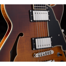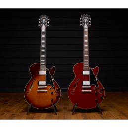 La Premier SS incarna l'eleganza del nome D'Angelico sia nell'aspetto che nel suono. Dotata di humbucker custom e di un body semi-hollow, la SS offre un tono caldo e vivido che spazia senza sforzo da dolci clean a caldi overdrive. La forma del manico "Slim C" è estremamente confortevole, mentre il leggero centerblock tiene a bada il feedback e favorisce il sustain. Il design del corpo single-cutaway è elegante dell'archtop. Le quattro manopole in ebano consentono di regolare con precisione i toni.