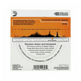 Il bronzo 85/15 unisce la brillantezza del bronzo 80/20 con la resistenza del bronzo fosforoso che porta a una maggiore durata delle corde. L'anima esagonale in acciaio al carbonio è avvolta con un filo rivestito in bronzo 85/15 per produrre un timbro brillante e duraturo e un'ottima intonazione.