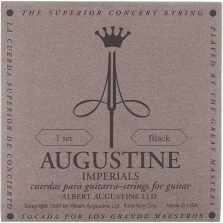 Le corde Augustine Imperial Black Gold Label abbinano i bassi della serie classica a tensione nromale con i cantini Gold, dal suono particolarmente cristallino e squillante. Sono corde da concerto, eccellenti per le chitarre classiche che rispondono bene ad un tocco più leggero e delicato.