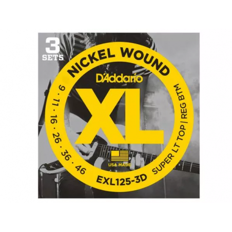 D'ADDARIO EXL125-3D PACK 3 MUTE NICKEL WOUND SUPER LIGHT 09/46