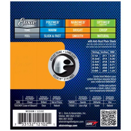 ELIXIR 12102 NANOWEB ELECTRIC GUITAR STRINGS 11-49 - MEDIUM