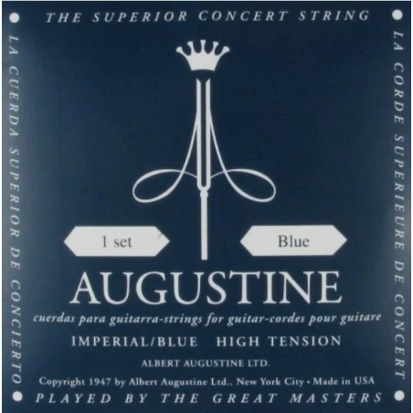 Augustine Imperial Blue Gold Label è un set di corde da chitarra classica a tensione forte che abbina i bassi classici della serie Blue con i cantini Gold. Questo set di corde da concerto è eccellente per le chitarre classiche che rispondono bene al tocco, donando un attacco veloce.