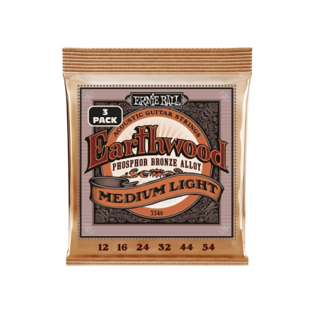 ERNIE BALL 3546 Earthwood Medium Light Phosphor Bronze 12/54 - 3 PACK
