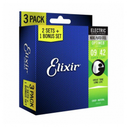 ELIXIR OPTIWEB 16550 PACK 3 MUTE 19002 PER CHITARRA ELETTRICA 09/42 SUPER LIGHT