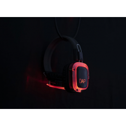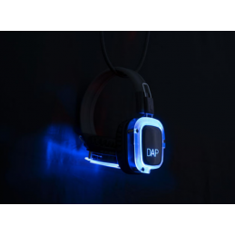 La custodia delle cuffie è dotata di LED RGB che mostrano il canale selezionato secondo il colore. Il colore può essere revocato tramite la tastiera DAP per il controllo LED delle cuffie Silent Disco (D1822) che può essere collegata al trasmettitore. Le custodie possono essere ripiegate per occupare meno spazio quando non sono in uso. La batteria agli ioni di litio da 500-mAh interna fornisce alimentazione fino a 8 ore a seconda del volume. Può essere caricata in 2 ore e mezza tramite il cavo incluso utilizzando un alimentatore da USB da 5 V (50040, non incluso) o il caricatore DAP dedicato per cuffie Silent Disco (D1823) che può caricare fino a 16 cuffie simultaneamente.