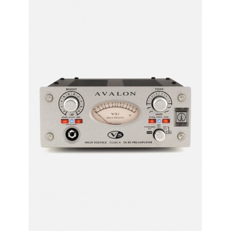 I preamplificatori DI Avalon vengono utilizzati in tutto il mondo dal 1985. Sono entrati nei rig dei musicisti più importanti del mondo e nelle sessioni di registrazione e sono stati inseriti in migliaia di album, download e performance dal vivo tra le più vendute (e suonate). Il V5 include il meglio delle funzioni della DI Avalon U5 con un preamplificatore di qualità da studio e "una nuova aggiunta sonora". Due topologie alternative a stato solido sono collegate in cascata per fornire un contenuto armonico ricco e a bassa gamma di frequenze medie non offerto da altri preamplificatori Avalon. Questa caratteristica conferisce al V5 una nuova scala di carattere sonoro.