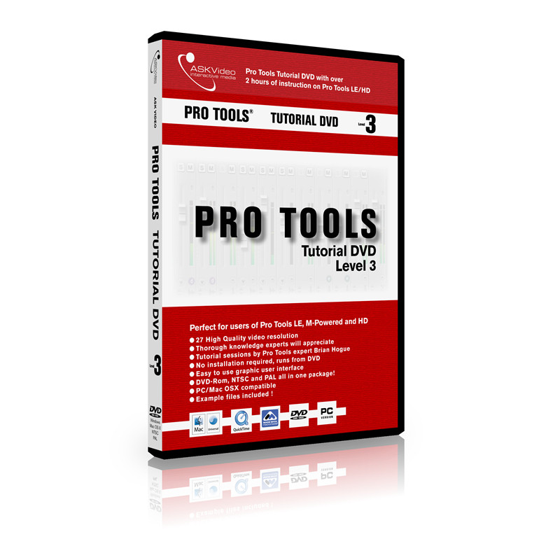 # 27 Videos # Over 2 hours of professional instruction # Tutorial based on Pro Tools 7 # Extremely high quality tutorial videos # Easy to use interface # Hostess introduces every video adding a personal touch not seen in other 'tech' tutorials. # Mac OS X & Windows compatible # DVD-Rom, DVD (NTSC) and DVD (PAL) all in one package!
