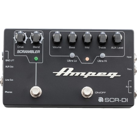 L'Ampeg SCR-DI Bass DI con Scrambler Overdrive è un autentico preamplificatore Ampeg, che offre una vasta gamma di suoni perfetti per il palcoscenico. Il classico Ampeg EQ offre un controllo timbrico supplementare, inclusi i controlli Ultra-Hi e Ultra-Lo. Inoltre è possibile ottenere suoni di tipo valvolare dirompenti con il Bass Scrambler overdrive. L'SCR-DI dispone di tutti i collegamenti per ottenere il suono Ampeg da qualsiasi impianto e inviare il tutto al front-of-house per essere sicuri che il pubblico ascolti il tuo suono. Con una uscita cuffie ed una Aux-In per esercitarsi con le basi, l'SCR-DI è anche uno strumento fantastico che si può riporre in una gig-bag.