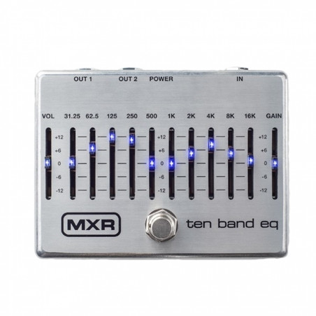 Il pedale MXR Ten Band Graphic EQ fornisce ai chitarristi una enorme possibilità di modellazione del tono e del livello di suono, in un contenitore a prova di proiettile. Questo pedale è stato aggiornato con un circuito noise reduction, true bypass switch, un case leggero in alluminio e un secondo output così da poter avere 2 linee di segnale separate. Grazie alle 10 frequenze accuratamente scelte e entrambi i controlli di INPUT GAIN e OUTPUT VOLUME, potrai ottimizzare il suono del tuo basso o della tua chitarra in qualunque stanza in pochi secondi.