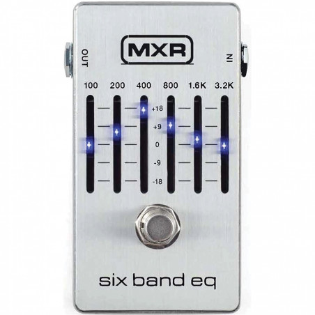 Il nuovo equalizzatore a 6 bande MXR copre le essenziali frequenze della chitarra, attraverso ogni slider sarà possibile operare con taglio o boost fino a +/-18dB, per un incredibile controllo del vostro suono. Questo pedale è stato aggiornato con un circuito di riduzione del rumore, switch True Bypass e un nuovo materiale di fabbricazione in alluminio leggero.