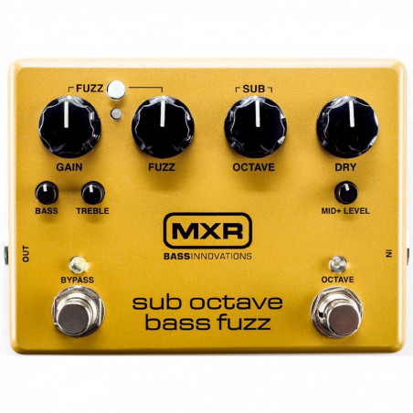 Il Sub Octave Bass Fuzz tira fuori quintali di low-end con fuzz da far tremare la terra. Per creare questo colosso sonoro, gli ingegnere di MXR hanno abbinato la sezione Growl del Bass Octave Deluxe, con un circuito Fuzz da tempo dimenticato. Con tre controlli di livello di uscita separati per il Fuzz, sub octave e segnale dry, puoi creare la tua ricetta di toni sotterranei senza sacrificare il suono naturale del tuo strumento. Altra caratterista che rende questo pedale ancora più versatile, è la presenza della zione TONE del Fuzz e due voci selezionabili - caldo è compresso oppure brillante e aggressivo - che abbinato al controllo Mid Level ti permette di dare più punch al midrange del tuo segnale DRY.