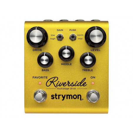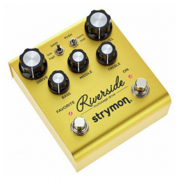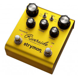 L'obiettivo di Strymon è sprigionare un nuovo mondo di suoni overdrive armonicamente ricchi e incredibilmente versatili, di ispirazione e carattere valvolare. Lo scopo non è stato costruire semplicemente l'ennesimo distorsore ma piuttosto portare un approccio completamente nuovo al mondo dei suoni distorti. Gli stadi di guadagno a cascata del Riverside creano dei suoni armonicamente ricchi, ed immensamente musicali e naturali, dal pulito cristallino fino alla distorsione estrema, passando per tutte le vie di mezzo. Le sezioni di ingresso e di uscita analogiche (JFET), assicurano che il Riverside risponda alla chitarra con una dinamica ed un feeling senza compromessi. L'estrema precisione del DSP custom invece, genera una complessità dinamica e delle armoniche gradevoli in ogni fase, permettendo che l'amplificatore risponda al meglio a qualsiasi livello di guadagno. Il Riverside porta il tuo amplificatore in una dimensione totalmente nuova! Il circuito a variazione continua del Riverside controlla in maniera dinamica più parametri all'interno del pedale, in modo da raggiungere lo Sweet Spot qualunque sia l'impostazione del guadagno. Mentre si ruota la manopola Drive, il Riverside compie continui aggiustamenti, mettendo a punto il circuito per ottenere il miglior suono possibile. Due sono inoltre le modalità operative che possono essere combinate facilmente tramite due mini switch sul pannello frontale: Low Gain/Hi Gain e Normal /Mid Push. Tutto ciò si traduce in un pedale overdrive incredibilmente versatile, che è ugualmente in grado di fornire suoni puliti cristallini, leggeri overdrive, distorsioni con alto guadagno, e saturazioni estreme.
