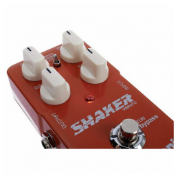 Lo Shaker Vibrato dispone di due tipi di vibrato: un vibrato classico "true pitch" e un "latch mode" in cui l'effetto è attivo solo quando si tiene premuto l'interruttore. Ciò consente di ottenere un vibrato sottile e finti effetti whammy-bar senza dover saltellare tutta la notte. Naturalmente Shaker Vibrato ha un vero sistema di bypass ed i controlli Speed, Depth, Tone and Rise Time.