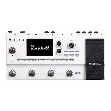 Pedaliera multieffetto per chitarra elettrica 70 modelli di amplificatore a tecnologia digitale non-lineare Mooer GE250 supporta il caricamento di ulteriori amplificatori 32 I.R. caricati, 10 slot utente per file I.R. di terze parti (2048 punti di campionamento) 11 diversi tipi di moduli effetto, 152 effetti di alta qualità; La funzione TONE CAPTURE consente di acquisire e campionare amplificatori reali Memorizza e richiama fino a 85 banchi di preset, 3 patch x banco, 255 in totale FX LOOP programmabile con routing della catena del segnale Uscite Stereo (jack 1/4 ed XLR), MIDI IN/MIDI OUT EQ globale consente di impostare unequalizzazione differente per le varie uscite Nuovo modulo RHYTHM, con 60 drum machine e 10 stili di metronomo differenti La funzione CTRL supporta lON/OFF dei moduli effetto, e la funzione TAP TEMPO Looper di 70 secondi con modalità; PRE/POST Pedale di espressione integrato programmabile L'audio USB consente di utilizzare la GE250 come interfaccia audio Interfaccia utente semplice ed intuitiva, editor per PC/MAC 70 modelli di amplificatore di alta qualità;, che utilizzano la tecnologia di modellazione digitale non lineare originale di MOOER della serie MICRO PREAMP. La GE250 supporta il caricamento di ulteriori modelli di amplificatore tramite l'editor per PC/MAC. 32 IR di modelli di cabinet/speaker per emulare le stesse dinamiche e la sensazione di suonare un vero amplificatore a valvole. 10 slot utente per caricare i propri file IR di terze parti preferiti (fino a 2048 punti di campionamento). 11 diversi tipi di moduli effetto, 152 effetti di alta qualità;, dagli stompbox ai plugin e unità; rack da studio. La funzione TONE CAPTURE consente di acquisire e campionare amplificatori reali per creare nuovissimi modelli di amplificatori digitali. Memorizza e richiama fino a 85 banchi di preset, ogni banco con 3 patch, 255 patch in totale. FX LOOP programmabile con routing della catena del segnale opzionale per una facile lintegrazione dei propri effetti, e massima flessibilità; di configurazione con un eventuale amplificatore grazie al metodo a 4 cavi. Uscite Stereo (jack 1/4 ed XLR) MIDI IN/MIDI OUT La funzione di EQ globale consente di impostare unequalizzazione differente per l'uscita principale, l'uscita cuffie e l'uscita bilanciata XLR. Nuovo modulo RHYTHM, con 60 drum machine e 10 stili di metronomo differenti. La funzione CTRL supporta la funzione ON/OFF dei moduli effetto, e la funzione TAP TEMPO. Looper di 70 secondi con modalità; PRE/POST. Funzione Trail On negli effetti di delay e riverbero. Accordatore di precisione incluso. Pedale di espressione integrato programmabile, possibilità; di collegare un pedale di espressione extra. L'audio USB diretto a bassa latenza consente di utilizzare la GE250 come interfaccia audio digitale, rendendola, anche grazie alleditor su computer, la soluzione all-in-one per la registrazione della chitarra elettrica. Linterfaccia utente semplice ed intuitiva, derivata dallesperienza e dai feedback degli utenti sulla GE200, semplifica e velocizza l'mpostazione dei preset. Trascorri più; tempo a suonare e meno tempo a scorrere tra i menu infiniti!