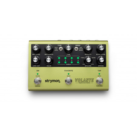 Simulatore di eco magnetico Delay con 4 testine e controlli indipendenti di feedback, panning, e level Algoritmi appositamente progettati generano una fedele riproduzione di 3 tipologie di echo magnetico vintage (echo a tamburo, echo a nastro, studio echo reel-to-reel) Controlli dedicati di livello di ingresso, tono e delle caratteristiche dellecho: Low Cut, Mechanics, Wear (usura del nastro) Effetto Spring Reverb indipendente Modalità; Sound-on-sound per looping audio con funzioni reverse, pause, splice, ramp up/down e ripetizioni infinite Ingresso stereo ad alta impedenza (con switch strumento/linea), uscite stereo Possibilità; di memorizzare un preset favorito, funzione tap tempo Implementazione MIDI In/Out, porta USB per controllo MIDI via PC, Ingresso EXP True Bypass / Bypass analogico bufferizzato di alta qualità; e super trasparente selezionabile Percorso del segnale completamente analogico, il segnale dry non è mai convertito in digitale, zero latenza Conversione segnale A/D e D/A a 24-bit 96kHz, elaborazione a 32-bit Alimentatore 9V DC 500mA incluso Delay con 4 testine e controlli indipendenti di feedback, panning, e level Algoritmi appositamente progettati generano una fedele riproduzione di 3 tipologie di echo magnetico vintage (echo a tamburo, echo a nastro, studio echo reel-to-reel) Controlli dedicati di tono e delle caratteristiche dellapparecchiatura echo: Low Cut, Mechanics, Wear (usura del nastro) Livello di registrazione in ingresso per riproduzioni da super-trasparenti a sature e calde Effetto Spring Reverb indipendente Modalità; Sound-on-sound per looping audio con funzioni reverse, pause, splice, ramp up/down e ripetizioni infinite Ingresso stereo ad alta impedenza Uscite stereo Switch in ingresso per selezione livello strumento/linea Possibilità; di memorizzare un preset favorito Footswitch per il controllo on/off effetto, preset favorito e funzione tap tempo Ingresso EXP per pedale despressione, tap tempo esterno, cavo jack/MIDI, o MultiSwitch Plus Completa implementazione MIDI In/Out con supporto MIDI CC, program changes, etc. Porta USB per controllo MIDI via computer Percorso completamente analogico del segnale. Zero latenza del segnale Il segnale dry non viene mai convertito in digitale Stadio di ingresso analogico premium JFET Convertitori ad alte prestazioni e bassissimo rumore di fondo 24-bit 96kHz A/D - D/A Processore SHARC DSP ad alta performance Elaborazione del segnale a 32-bit Risposta in frequenza 20Hz - 20kHz Impedenza audio in ingresso: 1M Ohm Impedenza audio in uscita: 100 Ohm True Bypass (commutazione tramite relè elettromeccanici) Bypass analogico bufferizzato di alta qualità; e super trasparente selezionabile Resistente e leggero chassis in alluminio anodizzato Alimentatore 9V DC incluso Assorbimento: 500mA Dimensioni: 114.3 mm x 177.3 mm x 44.5 mm Made in USA