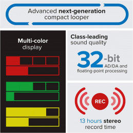 Con la conversione AD/DA a 32-bit e l'elaborazione a 32-bit in virgola mobile, RC-5 cattura il tuo sound personale con una fedeltà assoluta e riproduce loop dalla definizione cristallina, anche dopo numerose sovraincisioni. E con 13 ore di registrazione stereo, hai ampio spazio anche per i viaggi creativi più lunghi.