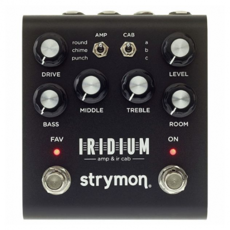Ti piacciono i tuoi pedali, ma odi trasportare un amplificatore per esercitarti o per suonare? Lo Strymon Iridium, con le dimensioni di un pedale, offre lo stadio valvolare, lo stack di suoni e la risposta al tocco di tre amplificatori iconici, ciascuno con la scelta di tre cabinet corrispondenti, il tutto in un'uscita stereo a livello di linea che è possibile inviare direttamente al FOH. Non è richiesto nessun amplificatore. Il preamplificatore Iridium JFET di Classe A gestisce la tua chitarra ed i pedali proprio come un vero amplificatore valvolare. Il suo front-end analogico alimenta un potente processore DSP a 2 stadi che approssima scrupolosamente il bias della valvola, il breakup armonico, la compressione del cono e l'interazione EQ di alcuni dei tuoi front-end preferiti. Sia che tu stia suonando un blues attraverso un grosso 1x12 Americano o sollevando il tetto con un'oscuro British ad elevata potenza, lo Strymon si sente e si gestisce come i tuoi stack e combo preferiti. Uno switch preset fornisce all'Iridium la funzionalità di un amplificatore a 2 canali per applicazioni pulite / sporche, con ulteriori 300 accessibili tramite switch MIDI. Nel frattempo, un jack per cuffie frontale ti consente di monitorarti direttamente dal palco, senza bisogno di auricolari.