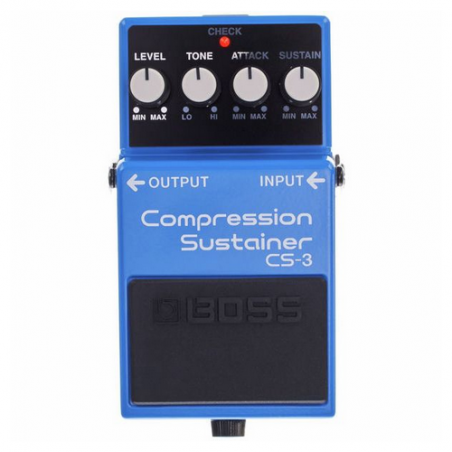 Il CS-3 comprime i segnali forti in ingresso ed amplifica quelli a basso livello, dandovi un sustain morbido senza degradare la qualità del suono originale. A portata di mano avrete una serie di effetti che vanno dalla semplice compressione ai suoni molto compressi. Concepito per operare ad un livello di rumore estremamente contenuto, il CS-3 offre anche un EQ per un preciso controllo del suono.