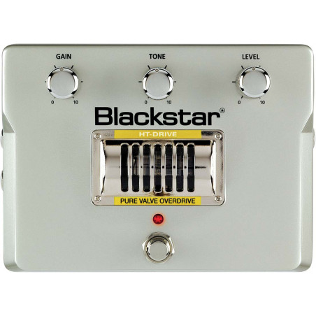 Pedale HT Drive. Overdrive valvolare per chitarra. Controllo tono 'Class A'. Valvola preamplificatrice ECC83 12AX7. Uscita con emulazione di altoparlante. Comandi (On/Off Switch, Gain, Tone, Level). Bypass con buffer. Include adattatore di corrente CA. Dimensioni 160 x 119 x 80 mm. Peso 1,2 Kg.