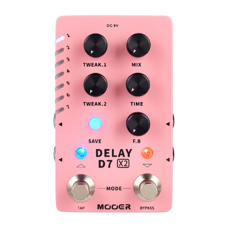 Il primo pedale ad ottenere il trattamento X2 è il D7 X2 Delay Pedal. Con i 14 effetti di delay di alta qualità, questo pedale offre più del doppio degli effetti del fratello più sottile, il D7 Delay, ed aggiunge anche ingressi e uscite stereo. La gamma di effetti di delay nel D7 X2 ha una vasta gamma dai classici delay analogici e a nastro ai delay più moderni e sperimentali come "Low-Bit", "Galaxy" e "PingPong". I parametri regolabili sono diversi in base a ciascun effetto e possono essere personalizzati con le manopole Tweak 1 e Tweak 2. Ulteriori parametri possono essere regolati utilizzando le manopole Mix, Time e Feedback. Il tempo di ciascun delay può essere regolato con la manopola Time o utilizzando il footswitch Tap Tempo per regolazioni rapide al volo.