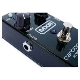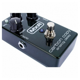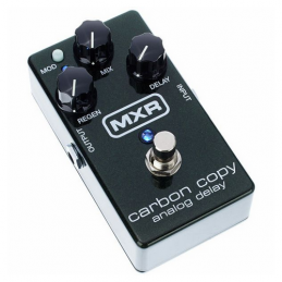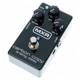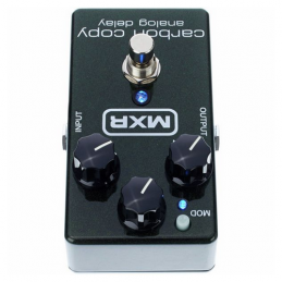 L'M169 Carbon Copy Analog Delay di MXR è dotato di un percorso audio completamente analogico per fornirvi un delay ricco e caldo; questo è possibile solo grazie alla tecnologia "bucket brigade"della vecchia scuola (sviluppata nel 1969 da F. Sangster e K. Teer: il segnale analogico memorizzato viene spostato lungo la linea di condensatori, uno step ogni ciclo di clock). Questo progetto vanta uno straordinario tempo di ritardo (Delay Time) di 600ms con modulazione opzionale selezionabile tramite interruttore e con tre semplici manopole che controllano il tempo di ritardo (Delay Time), la miscelazione dell'effetto (Mix), e la lunghezza dell'effetto (Regen), il tutto in un pedale non più grande di un Phase 90. Inoltre due Trim interni offrono all'utente la possibilità di regolare ampiezza (Width) e velocità (Rate) di modulazione, per avere ulteriori possibilità timbriche. Il Carbon Copy spazierà da un eco frizzante tipo "Bathroom " agli epici delay alla Gilmour con la sola rotazione di una manopola. True-Bypass, alimentazione a 9 volt ed un LED da palco di colore blu completano il tutto.