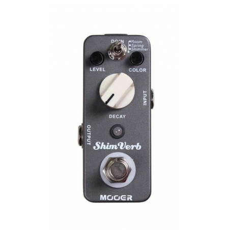 Mooer Shim Verb è un effetto a pedale per chitarra elettrica di tipo riverbero a tre modalità, che imita i suoni dei reverb classici degli anni sessanta e settanta. La modalità Room produce differenti suoni di riverbero, dalla tipica Room alla più grande Hall. La modalità Spring simula il suono di un tipico riverbero a molla, producendo dei classici suoni surf anni '60. Infine la modalità Shimmer aggiunge una grande ricchezza di armoniche al suono di riverbero, producendo una sonorità aperta, spaziale ed eterea, tipo synth-pad, per musica psichedelica.