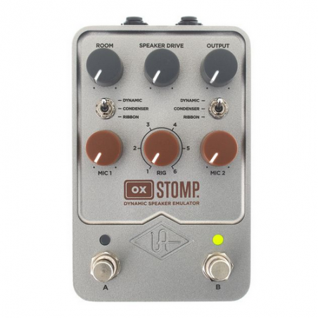 Oltre ai microfoni a condensatore, dinamici e a nastro posizionati in modo sapiente sui cabinet, OX Stomp è l'unico effetto a pedale a offrire una selezione completa di microfoni ambientali con Dynamic Room Modeling. In questo modo si può vivere l'autentica esperienza del movimento dell'aria durante la registrazione dell'amplificatore in una sala di registrazione di livello mondiale. Sia che si utilizzi un pedale amp-emulator della serie UAFX o altri popolari amp-modeler o multieffetti, o persino l'uscita di linea del pre del proprio ampli preferito, OX Stomp offre oltre 100 setup RIG, che consentono di ottenere suoni di grande ispirazione per qualsiasi tipo di amplificatore o genere.