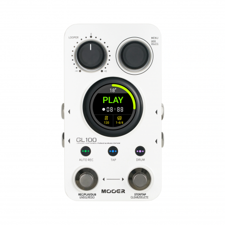Compatto e con memoria da vendere in fase di registrazione, forte di una drum machine alimentata da intelligenza artificiale e di un doppio footswitch per la gestione delle tracce, il GL100 è corredato da funzionalità avanzate.
