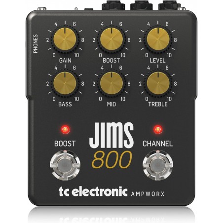 Il preamplificatore per chitarra a doppio canale ricrea fedelmente il suono di un amplificatore valvolare JCM800 modificato in un pedale con controlli dei canali indipendenti, pre/post boost, IR ufficiale Celestion Cab Sim e uscite dedicate per DI e cuffie. JIMS 800 rende omaggio al rock classico della chitarra. Quindi, preparati mentre un suono di chitarra rock senza precedenti ti si scontra in faccia! Sfruttando la tecnologia di modellazione all'avanguardia basata su componenti TC Ampworx, abbiamo incapsulato con successo l'abilità di una gloriosa e iconica testata di chitarra degli anni '80, il tutto in un pedale compatto. Avrai la potenza del tono di chitarra inconfondibile di quell'epoca proprio ai tuoi piedi.