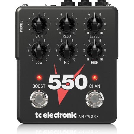 Il preamplificatore per chitarra a doppio canale 550 ricrea fedelmente il suono del leggendario amplificatore valvolare high-gain 5150 in un pedale con controlli indipendenti dei canali, pre/post boost, simulazione di cabinet opzionale e uscite dedicate per DI e cuffie.