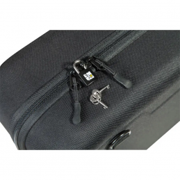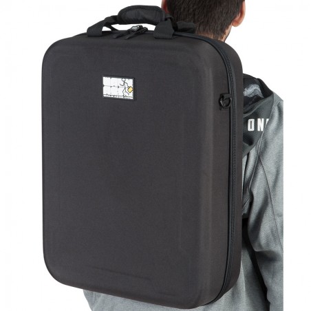 - Custodia rigida in EVA da 6 mm stampata a compressione con finitura esterna in nylon e rivestimento interno in velluto.