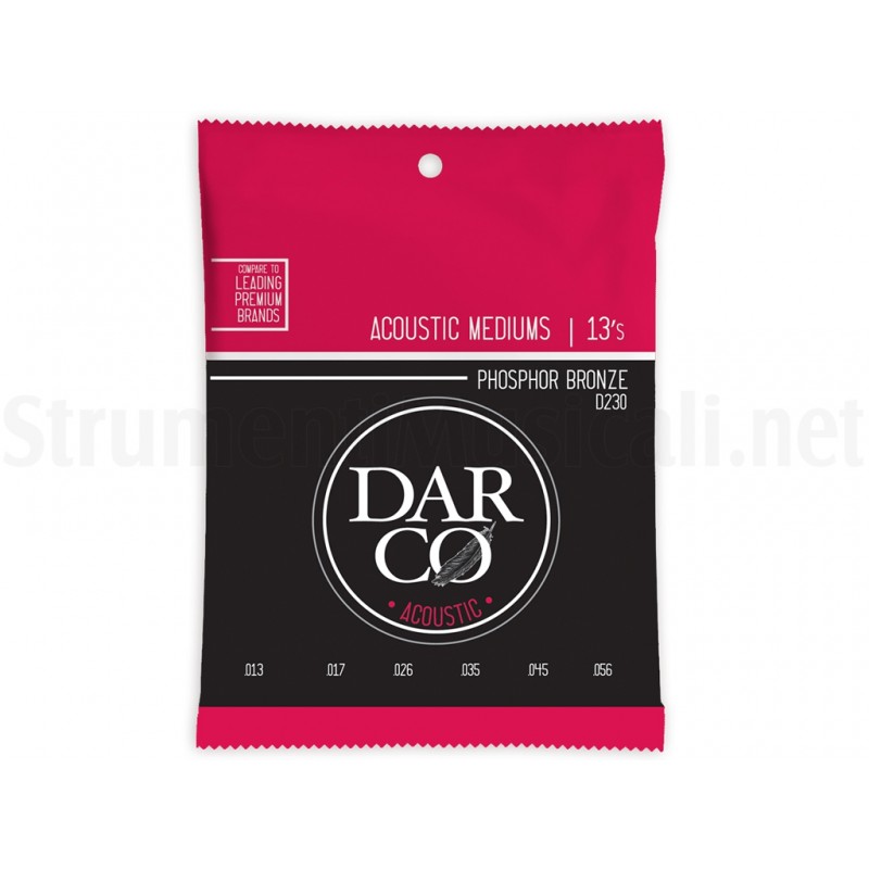Le corde per chitarra acustica D230 di Martin & Co Darco Acoustic sono la soluzione ideale per il musicista professionista che è solito cambiare le proprie mute frequentemente per avere costantemente il suono tipico della corda appena montata. Chitarre sempre nuove e pronte grazie ai prodotti Darco, che riducendo le corde a ciò che veramente è necessario ed evitando fronzoli inutili in grado di aumentare solamente i costi, hanno sviluppato corde potenti, chiare, equilibrate e longeve ad un prezzo ultracompetitivo. D230 sono formate da un'anima in acciaio stagnato e avvolgimento in Fosforo Bronzo di alta qualità, scalatura Medium e diametri: 13-17-26-35-45-56
