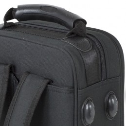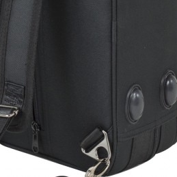 Custodia per clarinetto in poliestere plastificato e fodera in velluto nero. Imbottite in schiuma. Maniglie, tasca, tracolla e zaino. Dimensioni: 36x21x12cm. Peso: 1,1 kg.