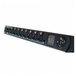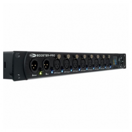 Il Booster Pro è lo strumento DMX definitivo che dovrebbe essere presente nel rack delle attrezzature di ogni società di noleggio o installazione. Il Booster Pro è uno splitter e un booster DMX isolato ottico. Il Booster Pro ha 2 ingressi che possono essere collegati a 8 uscite selezionabili (per ogni uscita è possibile collegare l'ingresso A o B). Il Booster Pro è completamente compatibile con RDM e offre un monitoraggio DMX in tempo reale. Per le applicazioni specialistiche è possibile regolare la temporizzazione DMX. Inoltre, ogni uscita del Booster Pro è dotata di una funzione di monitoraggio che controlla in tempo reale lo stato dei cavi collegati. In caso di guasto, un segnale acustico avvisa l'utente. L'intuitivo display OLED consente di impostare tutte le diverse funzioni in modo semplice e veloce.