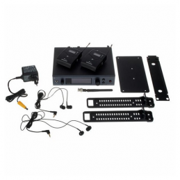 Composto da 2 ricevitori bodypack UHF (EK IEM G4), trasmettitore da 9,5" (SR IEM G4) e 2 cuffie IE4