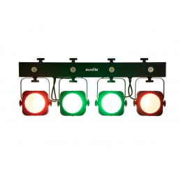 Barra LED con 4 spot RGB e 4 LED bianchi stroboscopici