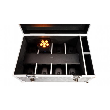 Par a batteria professionale di alta qualità, 6 led HEX RGBW+A+UV 12 watt, IP Rating: IP54 superiore/ IP20 inferiore, 100% vero DMX senza fili fino a 400m di distanza di controllo visibile, batteria ricaricabile agli ioni di litio con LG chem, durata della batteria 12 ore a singolo colore, angolo di emissione: 25 gradi, display OLED con tasti a sfioramento, telecomando a infrarossi.