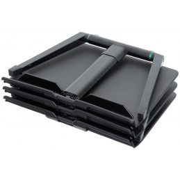 Grazie al suo design unico e brevettato, si ripiega in tre sole mosse mantenendo lo stesso ingombro delle dimensioni del vassoio, e sotto 5 centimetri di spessore. Lo fa senza manopole, senza trappole per le dita e senza problemi.