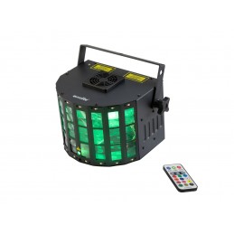 Effetto luce DMX con laser RG (2M), LED derby rotante, stroboscopio e telecomando IR