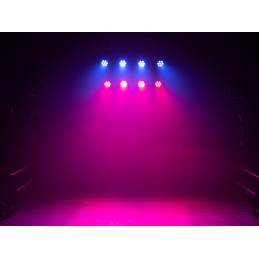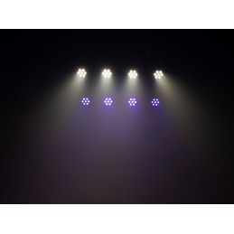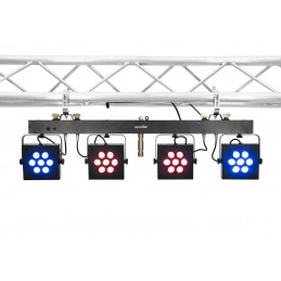 Barra con 4 potenti spot RGBAW/UV, supporto QuickDMX, telecomando IR e borsa da trasporto