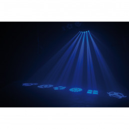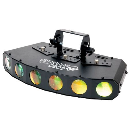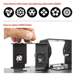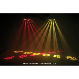 Gobo Motion LED di American DJ è caratterizzato da veloci fasci colorati Tri LED con 6 motivi gobo sostituibili. I gobo possono essere rimossi e l'apparecchiatura può essere utilizzata con 6 fasci luminosi compatti. Questo effetto luminoso consente a piccoli club ed intrattenitori itineranti di avere a disposizione più effetti luminosi in un'unica unità senza dover trasportare più apparecchiature. Gobo Motion LED è semplice da utilizzare ed ha 3 modalità di funzionamento: controller DMX, Master/Slave e Sound-Active. Quando utilizzato in modalità Sound-Active o Master/Slave, sono disponibili diversi programmi integrati. È possibile utilizzare il telecomando UC3 di American DJ per attivare e disattivare l'unità e per scorrere attraverso i vari programmi. È possibile collegare tra loro fino a 9 Gobo Motion LED tramite connettori IEC.